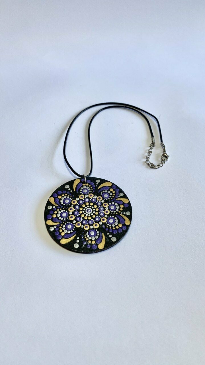 Fio com uma linda mandala, pintada à mão, em material muito leve em madeira .